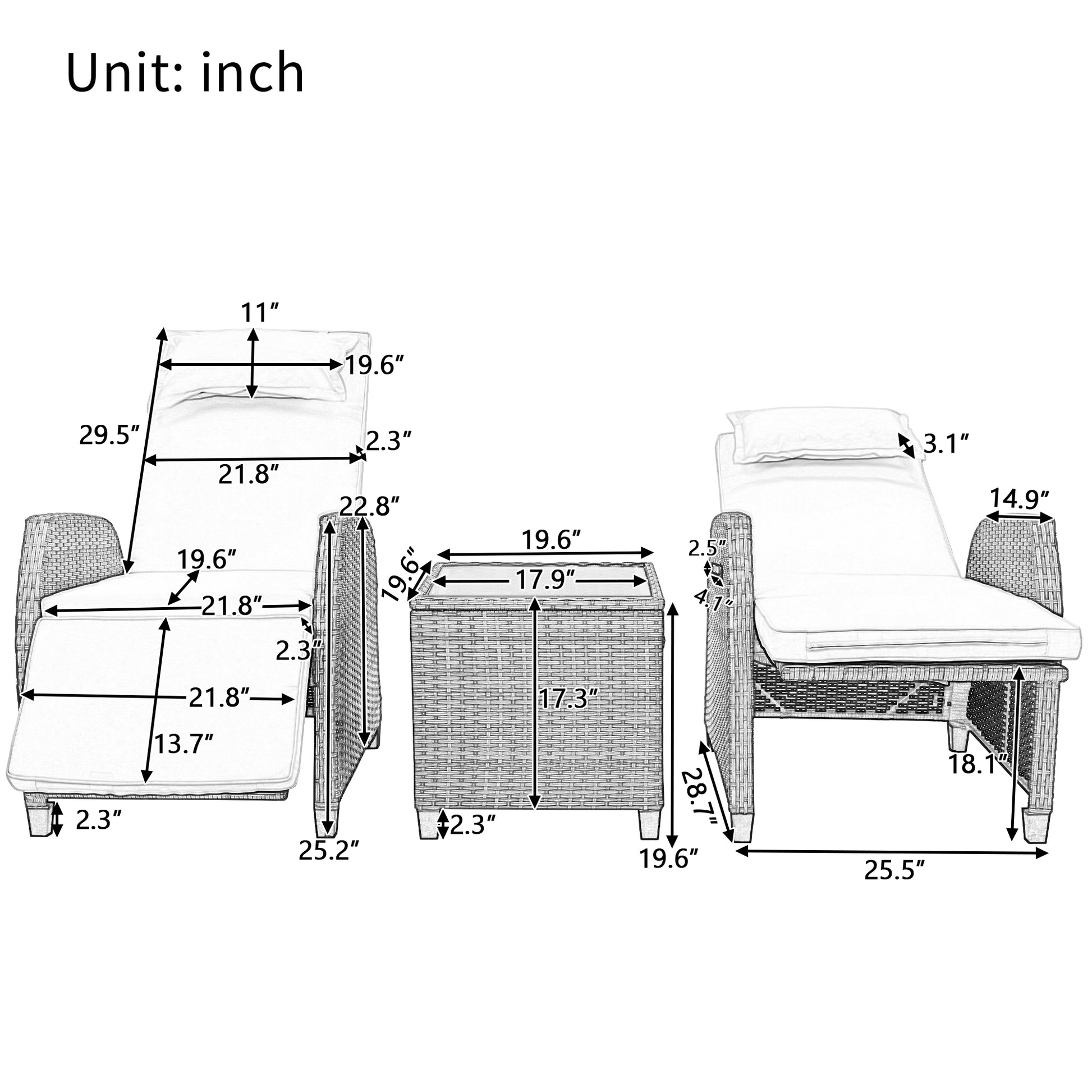 Outdoor Rattan 2-Person Adjustable Sofa with Coffee Table – Patio, Courtyard, Poolside, Balcony